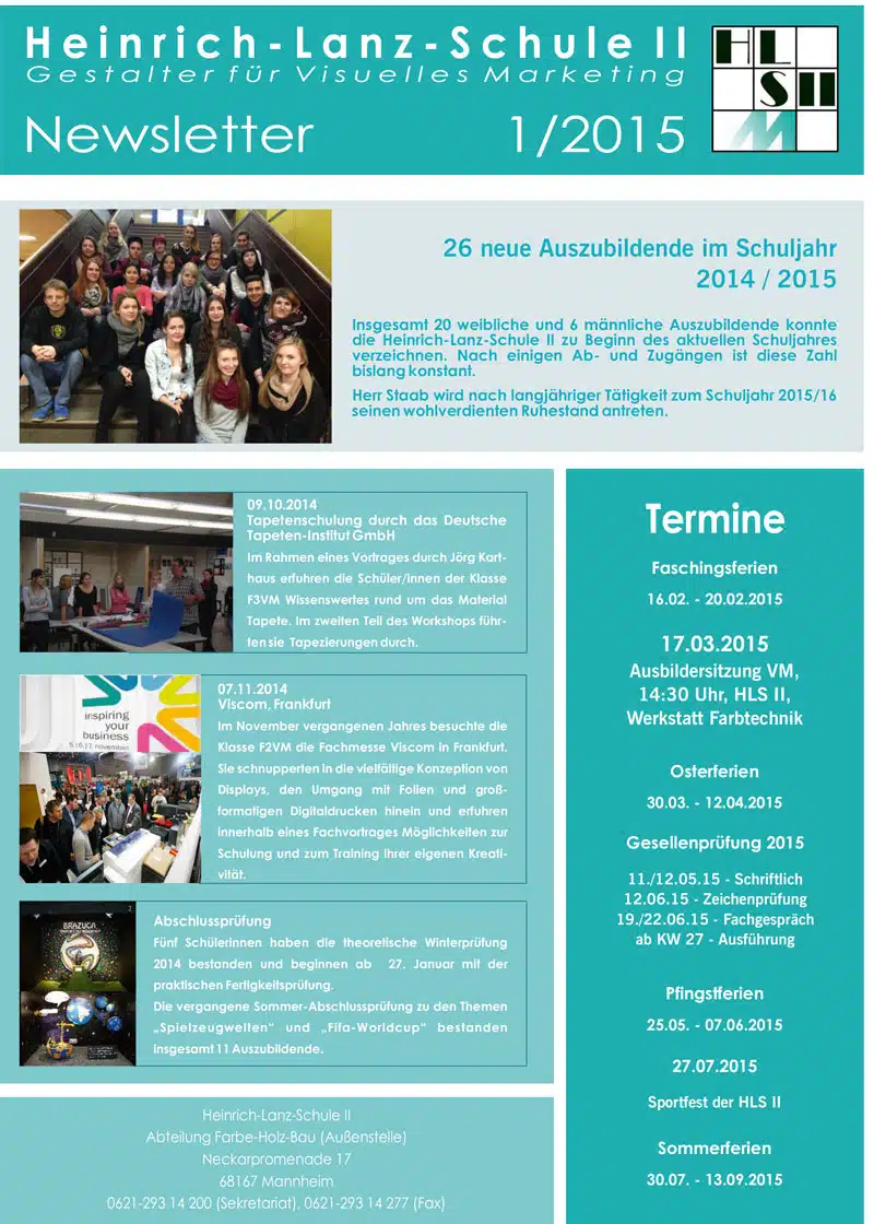 Insgesamt 20 weibliche und 6 männliche Auszubildende konnte die Heinrich-Lanz-Schule II zu Beginn des aktuellen Schuljahres verzeichnen. Nach einigen Ab- und Zugängen ist diese Zahl bislang konstant. Herr Staab wird nach langjähriger Tätigkeit zum Schuljahr 2015/16 seinen wohlverdienten Ruhestand antreten.