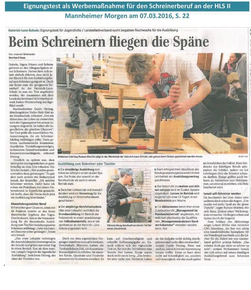 Eignungstest als Werbemaßnahme für den Schreinerberuf an der HLS II